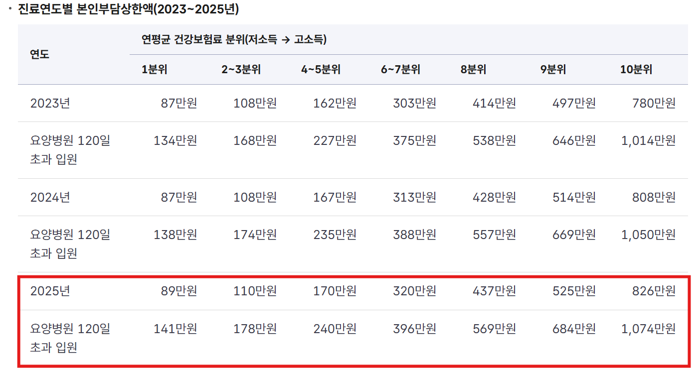쉽게 말해, 아무리 의료비가 많이 나와도 개인이 감당해야 하는 금액에는 상한선이 있다는 뜻입니다.