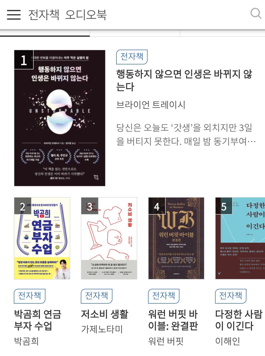 각 도서관마다 구매한 전자책 목록 장서 가 다르므로, 인기 도서를 찾을 때는 여러 도서관의 장서를 확인해 보는 것이 유리합니다.