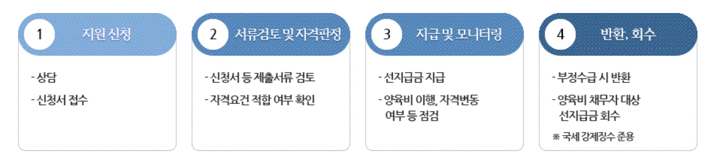 이 제도는 비양육 부, 모로부터 양육비를 받기 전에 국가가 먼저 양육비를 지급하고,